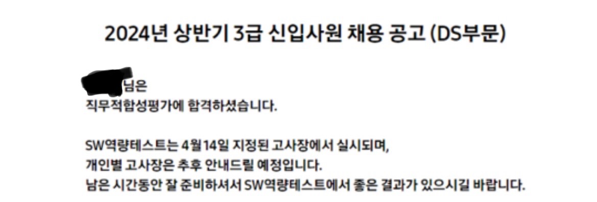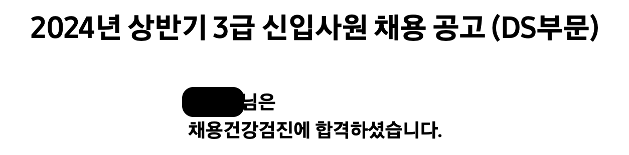 졸업 후 약 1년의 도전 끝에 삼성전자 DS 2024년 상반기 공채에 합격했습니다.