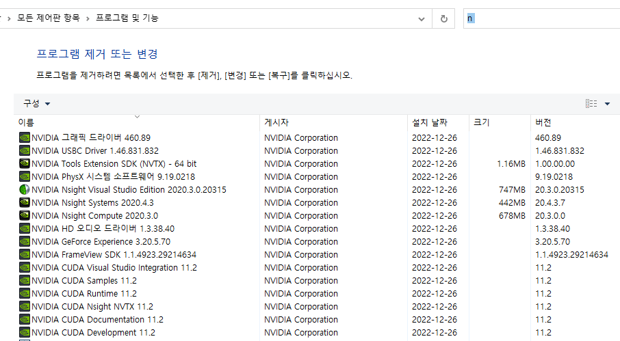 2. CUDA, cuDNN 삭제하기