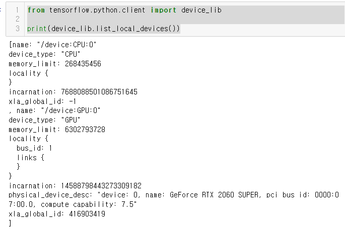 아래와 같이 GPU 기기가 잡힌다면 성공입니다.