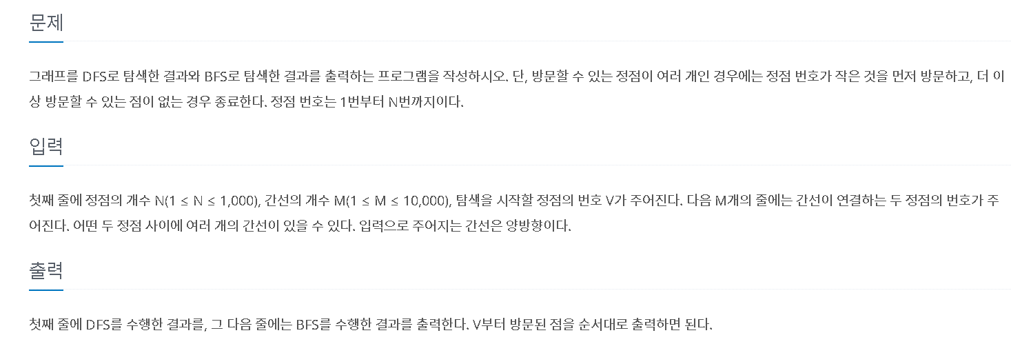 이때, 백준에서는 여러 간선이 있을 때 작은 수 부터 방문하라는 조건이 있었으므로